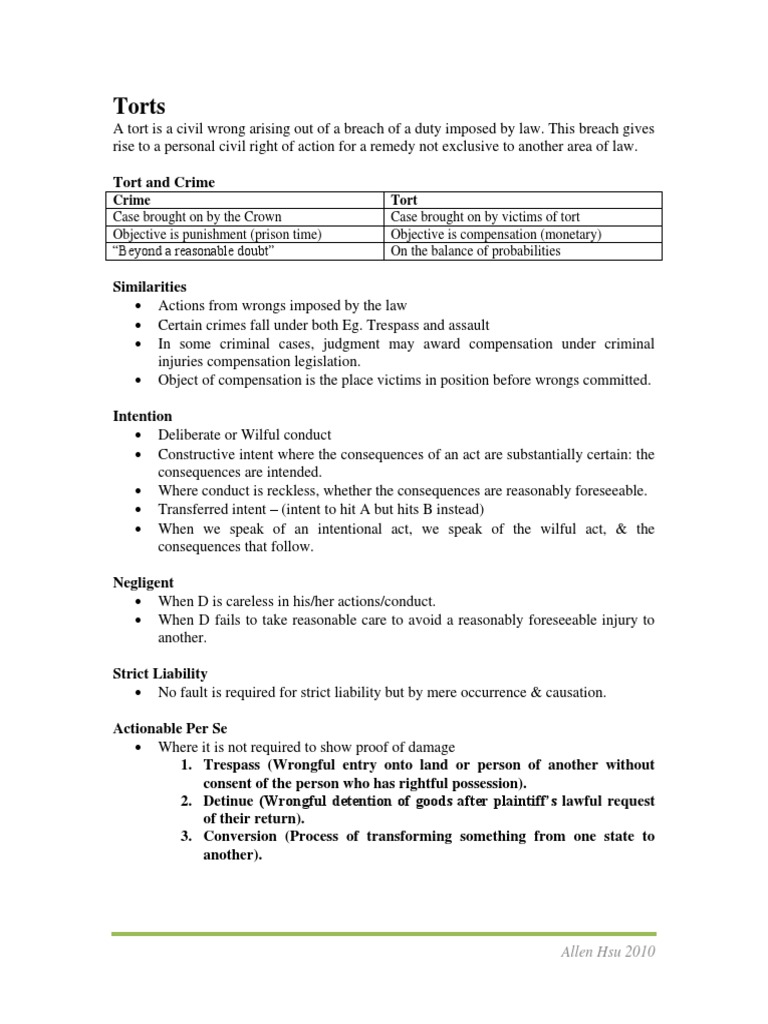 What is the meaning of torts actionable per se. In the context of torts injury describes the invasion of any legal right whereas harm describes a loss or detriment in fact that an individual suffers. C To restrict the growth of the compensation culture. Trespass to land Committed when an individual intentionally enters the land of another without lawful excuse.