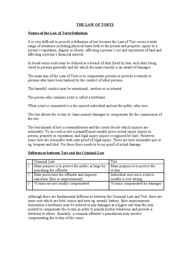 An Introduction To Law Of Torts Meaning Nature And Essential Elemen
